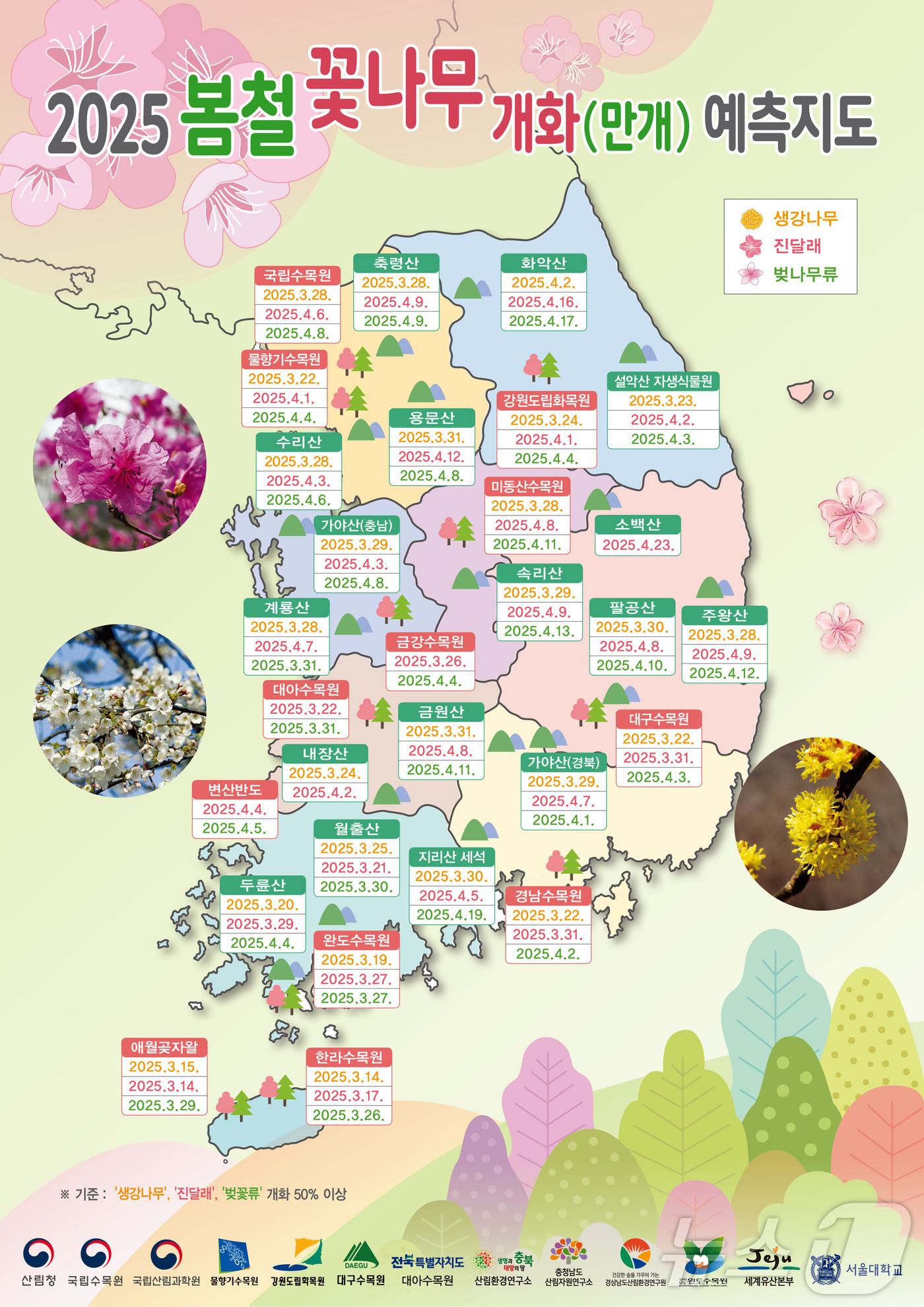 - 강원도 지역은 기온이 낮아 다른 지역에 비해 약간 늦게 개화