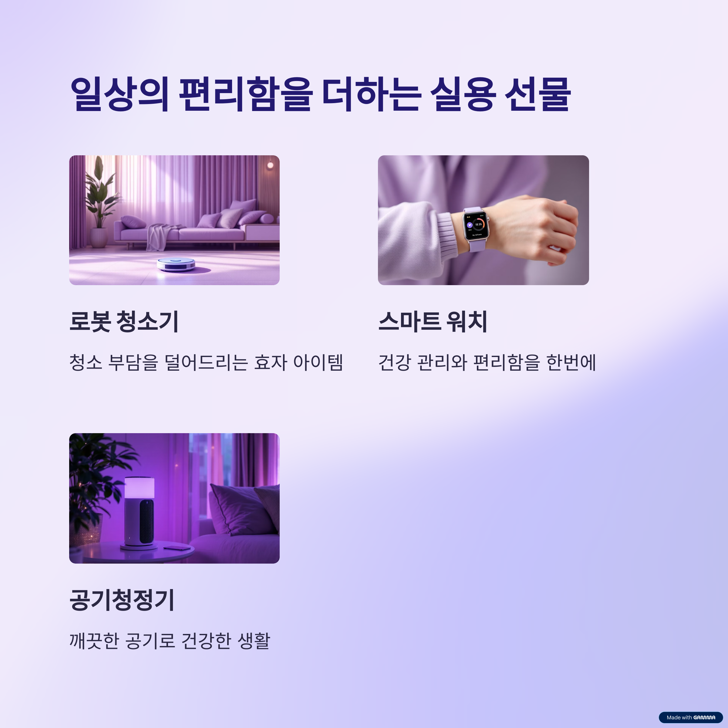 "생활을 더 편리하게 만들어주는 선물", 아주 현실적이고 센스 있죠!